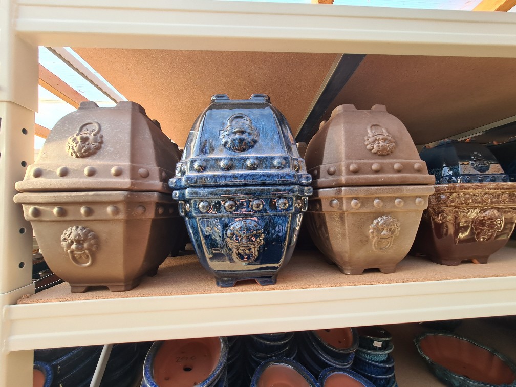 Bonsai miska 27 x 27 x 14,5 cm, barva přírodní Bonsai miska 31 x 23 x 6,5 cm, barva  modrá Bonsai miska 28 x 28 x 9 cm, barva modrá Bonsai miska 32 x 23 x 7 cm, barva zelená