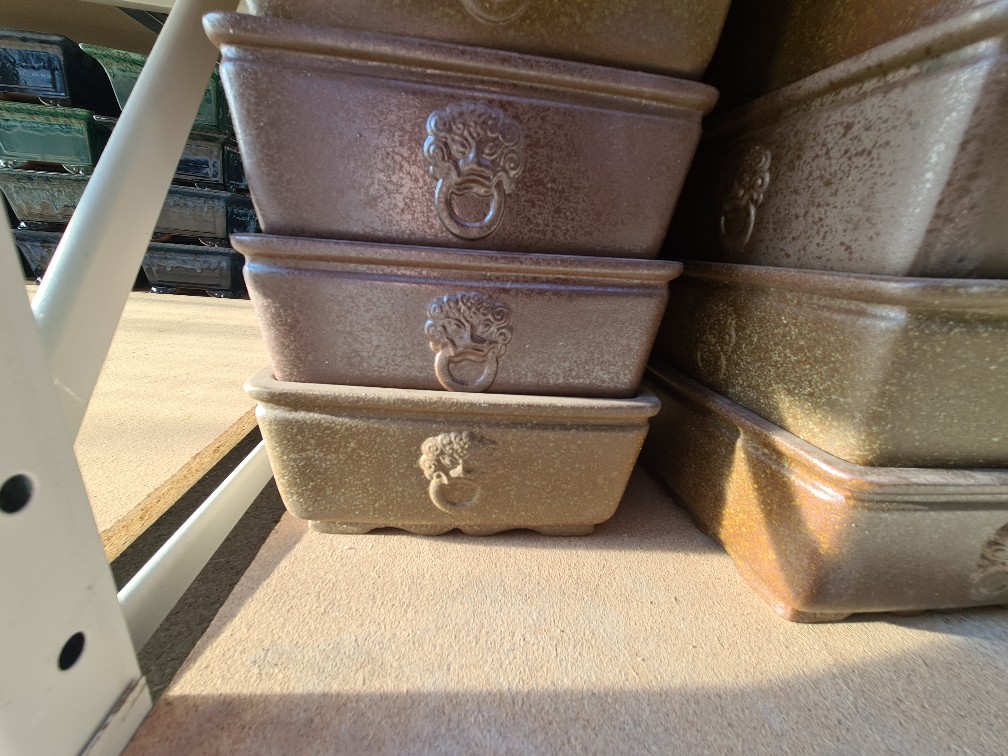 Bonsai miska 21 x 16 x 4,5 cm, barva hnědá Bonsai miska 18,5 x 14,5 x 4,5 cm, barva zelená Bonsai miska 19,5 x 19,5 x 10 cm, barva hnědá Bonsai miska 17,5 x 14 x 6 cm, barva hnědá
